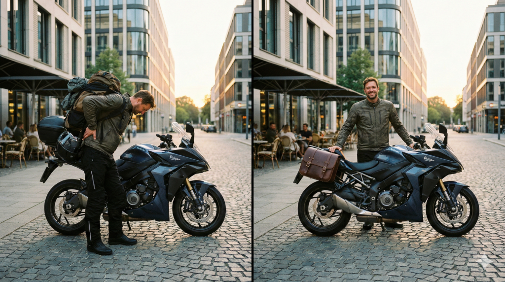 Mochila vs alforge (conforto) Quase todo motociclista começa carregando tudo na mochila. E quase todo motociclista, com o tempo, descobre o “preço” disso: dor nas costas, calor, fadiga, menos mobilidade e até perda de atenção no trânsito. A comparação é simples: mochila prende você; alforge libera você. Mochila ou alforge na moto? A escolha que […]