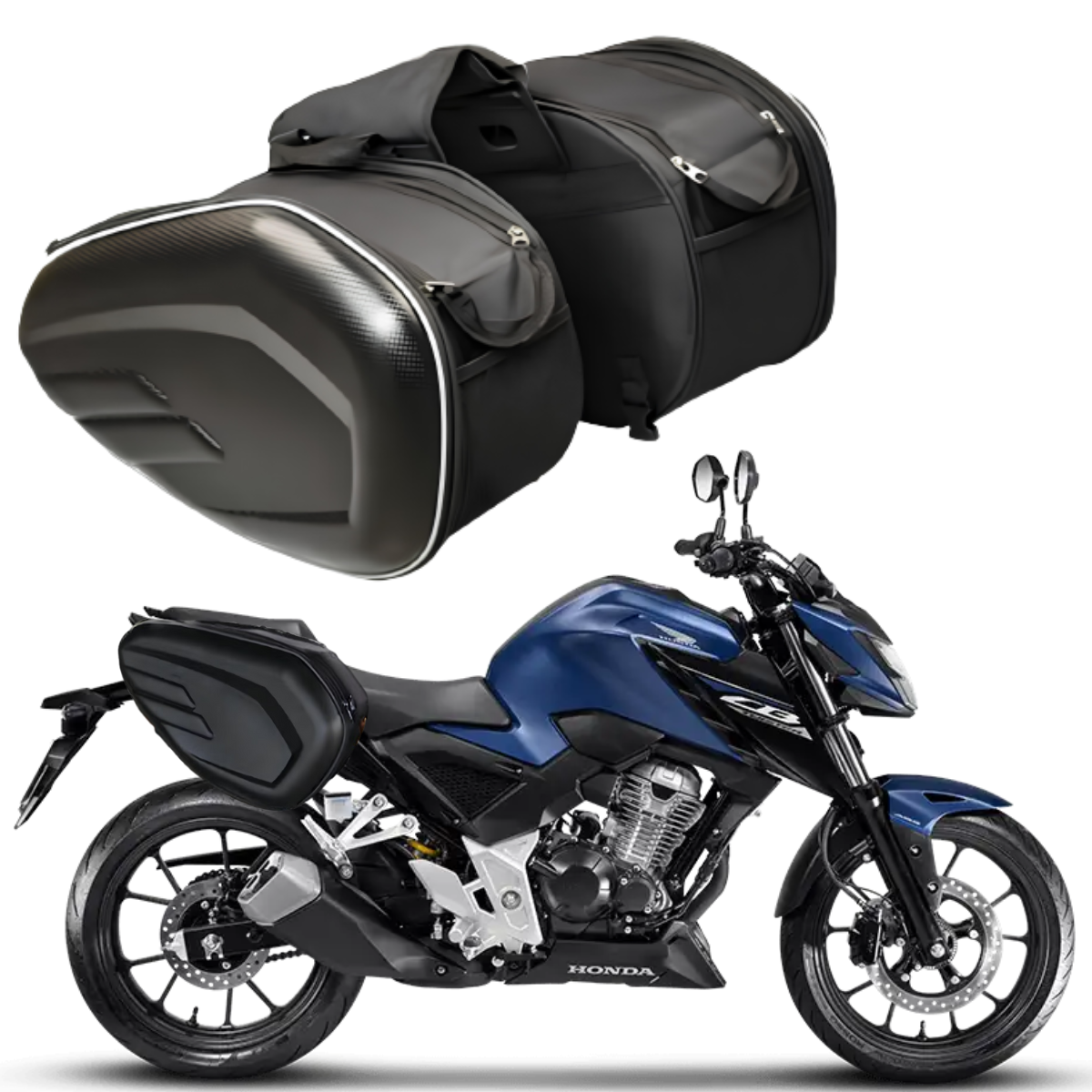 É a escolha perfeita para quem procura alforge grande, baú lateral flexível, mala resistente de 58L, bagagem robusta para Hornet, acessório para viajar, e máximo espaço sem comprometer a estética esportiva da moto.