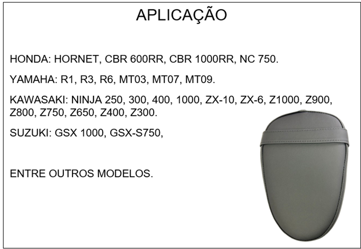 A almofada absorve vibrações, trepidações e irregularidades do terreno, típicas de motos big trail. Ela reduz o cansaço do passageiro em percursos urbanos, rodoviários e aventuras prolongadas.
