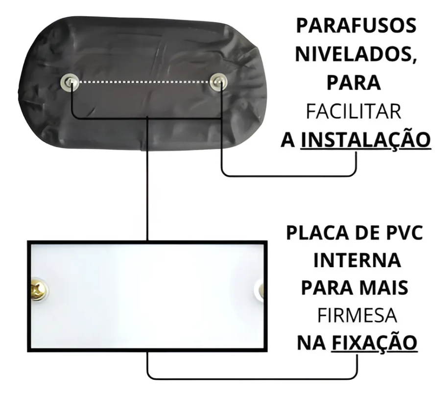 Fixação: adesivo dupla face ou parafusos (dependendo do baú)